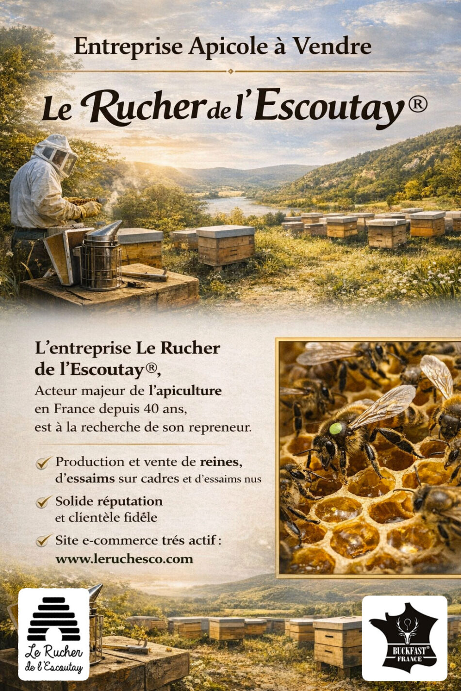 L'entreprise Le Rucher de l'Escoutay®, acteur majeur de l'apiculture en France depuis 40 ans, est à la recherche de son repreneur.